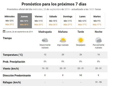 Para la tarde del jueves se espera una temperatura máxima, en la ciudad, de unos 25º.