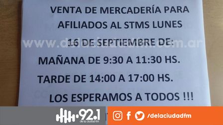 Para el próximo lunes se prevé llevar a cabo la venta de alimentos y artículos de limpieza en el salón sindical.
