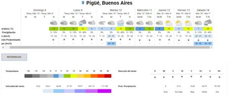 La sensación térmica, a esa misma hora, era de cuatro grados en Pigüé.