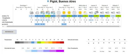 La responsable de la Estación Pigüé del Servicio Meteorológico Nacional comentó “pasamos unos pocos días de primavera, pero ahora continúa el invierno. Esta situación durará hasta el día jueves. Hay descenso de temperaturas mínimas y heladas”.