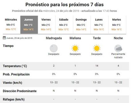 En Pigüé la marca de la sensación térmica se encontraba en 3º a la misma hora.