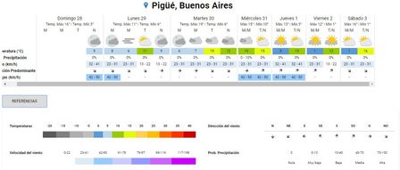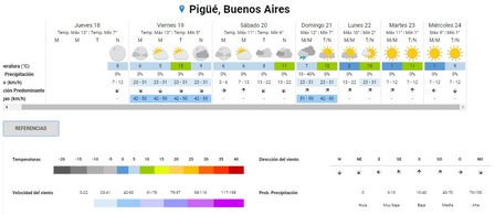 La sensación térmica, en Pigüé, a la misma hora, era de 5º.