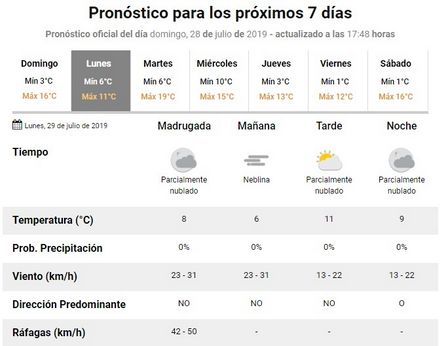 Las lloviznas podrían marcar presencia durante el resto del día lunes en Pigüé.