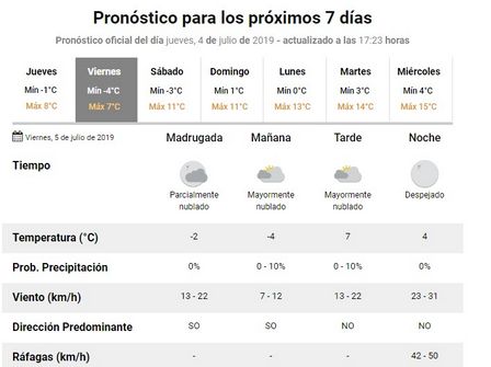 5.2º bajo cero se registraron en la localidad marcando el registro más frío del 2019.