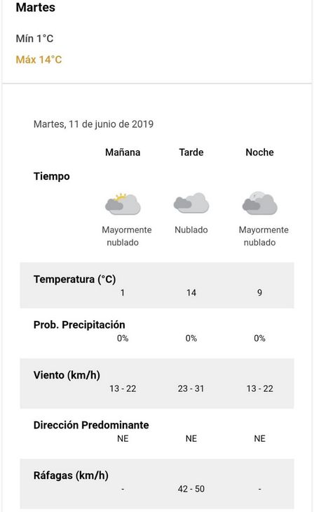 Para esta tarde anuncian una máxima que podría llegar a los catorce grados centígrados.