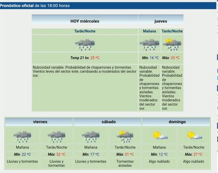 El SMN advierte sobre temperaturas elevadas acompañas de tormentas en la zona.
