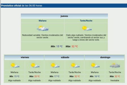 Según el SMN habrá cielo despejado, con vientos, y temperaturas elevadas.