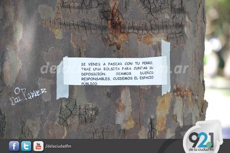 Ellos dicen 'si venís a pasear con tu perro trae una bolsita para juntar su deposición. Seamos dueños responsables. Cuidemos el espacio público'.