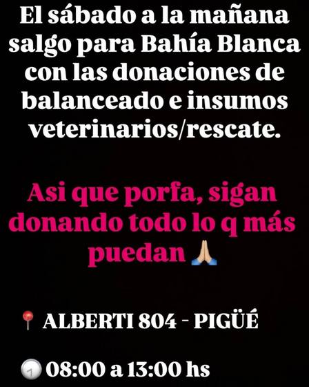 En Pigüé sobre calle Alberti 804, de 8.00 a 13.00 horas, están recepcionando alimentos balanceados e insumos veterinarios y para el rescate de perros y gatos.