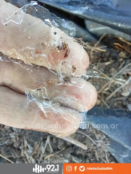 En el Predio Eco Pigüé, sobre calle San Juan, a metros del cruce de las vías, se produjo la presencia de escarcha en las primeras horas de esta mañana.