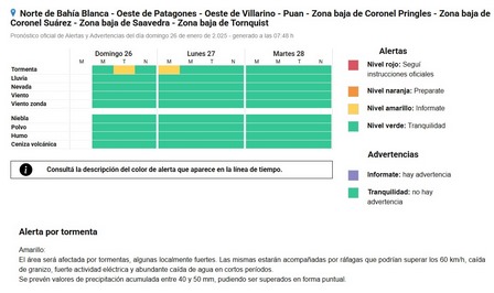 El Servicio Meteorológico Nacional incluye a una zona que abarca a varios distritos del Sudoeste Bonerense.