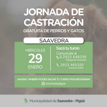 En el salón del Club Ferro, el miércoles 29 de enero de 2025, habrá castración gratuita de mascotas.