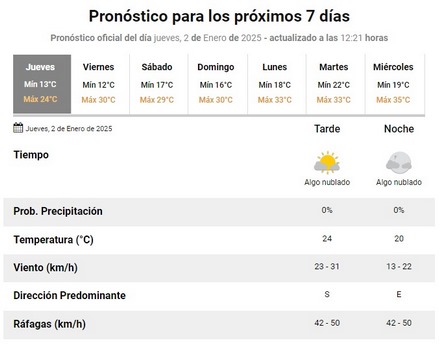 Con sol, hoy, jueves, 2 de enero de 2024, pronostican una máxima de veinticuatro grados en la ciudad.