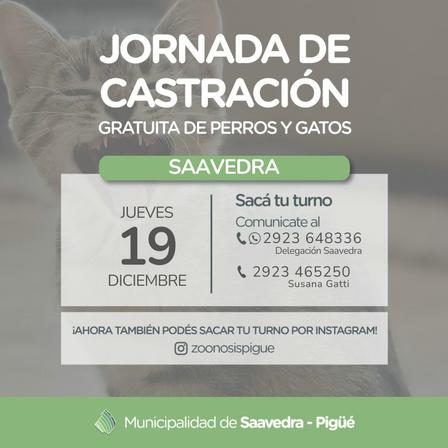 En el salón del Club Ferro, el miércoles 19 de diciembre, habrá castración gratuita de mascotas.