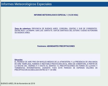 El SMN emitió un alerta sobre las precipitaciones.