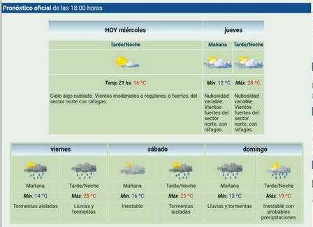 Para el día de hoy, jueves, están anunciando, desde el Servicio Meteorológico Nacional, una máxima de veintiocho grados.
