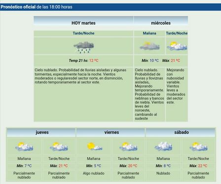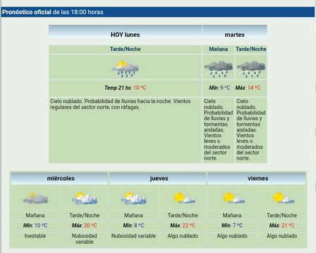 El martes nuevamente podrían darse precipitaciones en la localidad con una máxima de catorce grados.