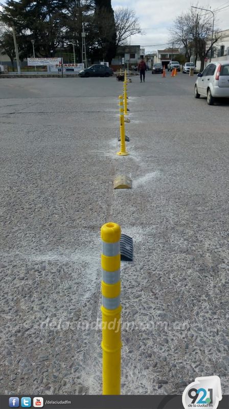 En la Avenida Rastreador Fournier esquina Avenida Alsina colocaron nuevos elementos para controlar el tránsito del lugar.