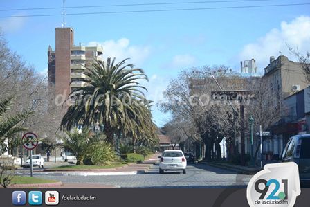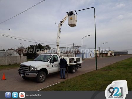En el tramo de calle Lucio Vicente López, entre Belgrano y Sadi Carnot de la ciudad, trabaja personal municipal.