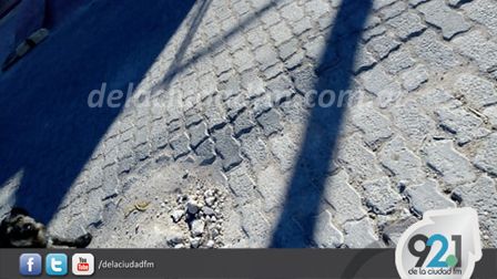 Cerca del canal derivador de la ciudad, sobre el pavimento articulado, el bache generó quejas.