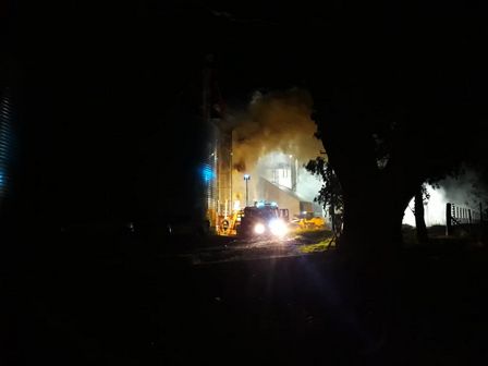 Una secadora de cereales de Semillera Ceres sufrió un incendio en parte superior generando trabajo para dos móviles de bomberos en el lugar.