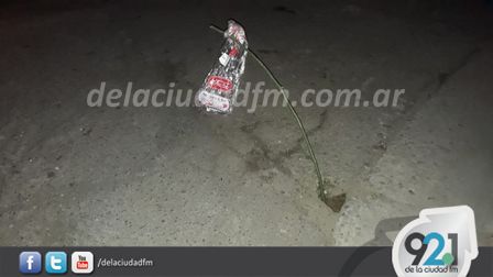Los vecinos colocaron una rama con una bolsa para marcar el bache en el lugar.