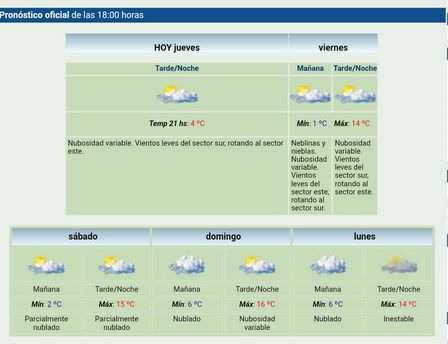 Para el jueves se esperan 11º de máxima en Pigüé.