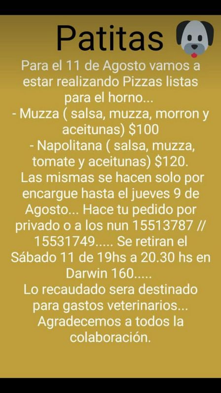 La Asociación Patitas está promocionando la venta de pizzas pare recaudar fondos.