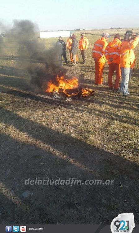 La quema de cubiertas se produce frente a las instalaciones ubicadas en el Acceso a Saavedra por Ruta 33.