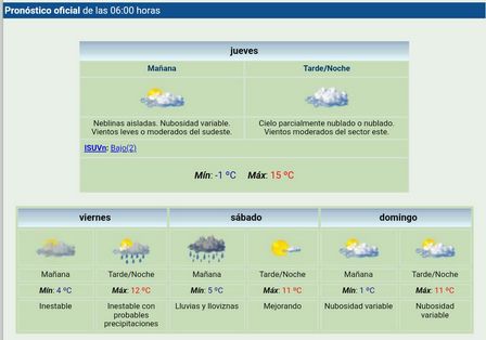 En la ciudad, tanto para el viernes como para el sábado, se prevén precipitaciones con temperaturas mínimas de 4 a 5 grados.