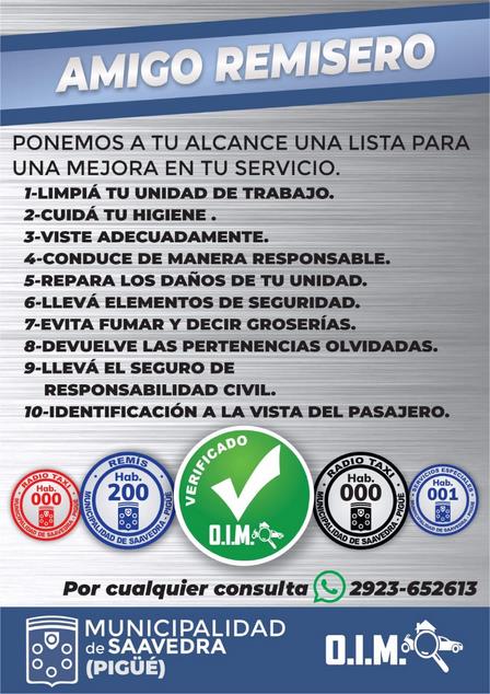 El mensaje dice 'Amigo remisero: Ponemos a tu alcance una lista para una mejora en tu servicio'.