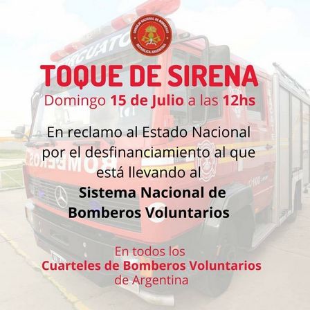 Este acto tendrá lugar en reclamo al Estado Nacional por "el desfinanciamiento al que está llevando al Sistema Nacional de Bomberos Voluntarios".