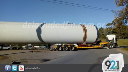 El camión que transporte una cañería de gran porte debió desviarse por un camino colectora para luego volver a retomar la senda de la Ruta Nacional.