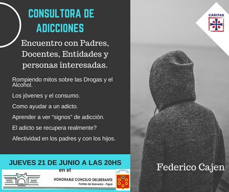 En el lugar una consultora dedicada al trabajo con adicciones estará encabezando un encuentro con padres, docentes, representantes de entidades, y personas interesadas.