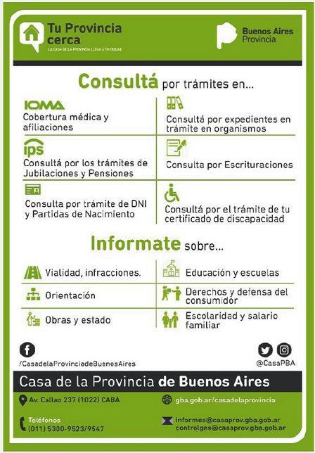 A raíz de la llegada de la Casa de la Provincia a la ciudad uno podrá consultar por el estado de las obras en el distrito, el trámite del DNI y las Partidas de Nacimiento.