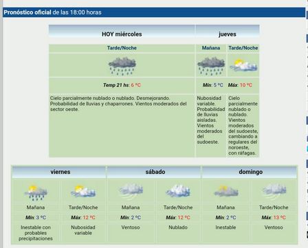 El SMN advierte, para el viernes, sobre bajas temperaturas con tormentas.