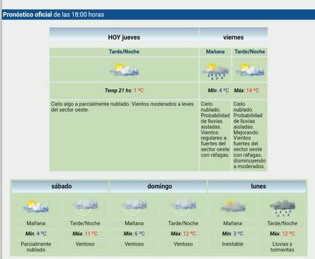Durante el día de hoy, jueves, el Servicio Meteorológico Nacional anunció once grados de máxima.