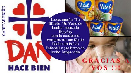 Con estos fondos CARITAS comprará 100 kilos de leche en polvo infantil y 310 litros de leche larga vida.