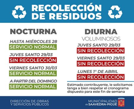 Hasta el miércoles el servicio será normal, el jueves santo no habrá recolección, el viernes sí se realizará.