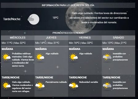 En el portal de https://www.meteored.com.ar anuncian precipitaciones para los días viernes, sábado, y domingo.
