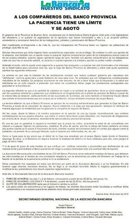 El paro de 48 horas tendrá lugar esta semana impulsado por el gremio La Bancaria.