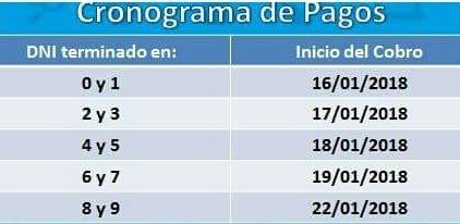 Dieron a conocer ya el cronograma de pagos para el actual mes de enero de 2018.