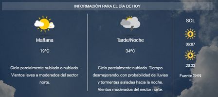 De acuerdo a los anuncios del Servicio Meteorológico Nacional se estima, para el miércoles, una máxima de treinta y dos grados.