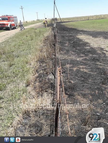 El fuego afectó pastos y alambradas en el campo del señor Rogelio Wagner.