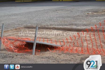 Por estas horas se llevan a cabo tareas de reparación sobre la cinta asfáltica del acceso a la Terminal de Ómnibus.