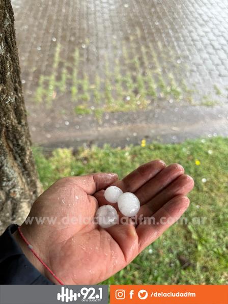 Cerca de las 11.30 horas se produjo la caída de granizo mientras la lluvia volvía a registrarse esta mañana en la localidad.
