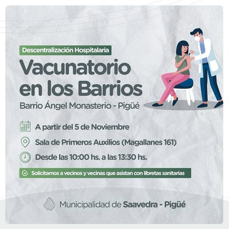 Las autoridades de Salud Municipal han solicitado a los interesados a acercarse, por la mañana, desde las 10.00 hasta las 13.30 horas, con su Libreta Sanitaria a Magallanes 161 de Pigüé.