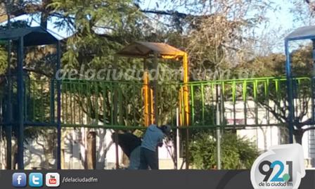 Por estas horas un grupo de operarios se encuentra incorporando nuevos juegos para los chicos que acuden al espacio público de la zona céntrica.
