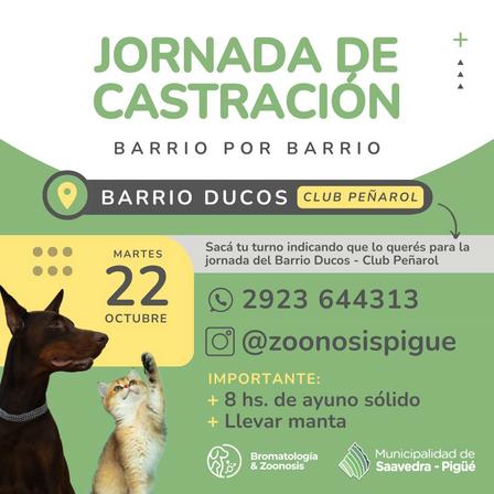 Para el martes 22 de octubre es posible comunicarse al 2923 64 43 13.