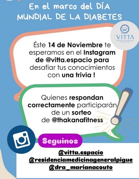En el marco del Día Mundial de la Diabetes, a través de la cuenta de Instagram de @vitta.espacio, estará buscando desafiar los conocimientos de los lectores a través de una trivia.